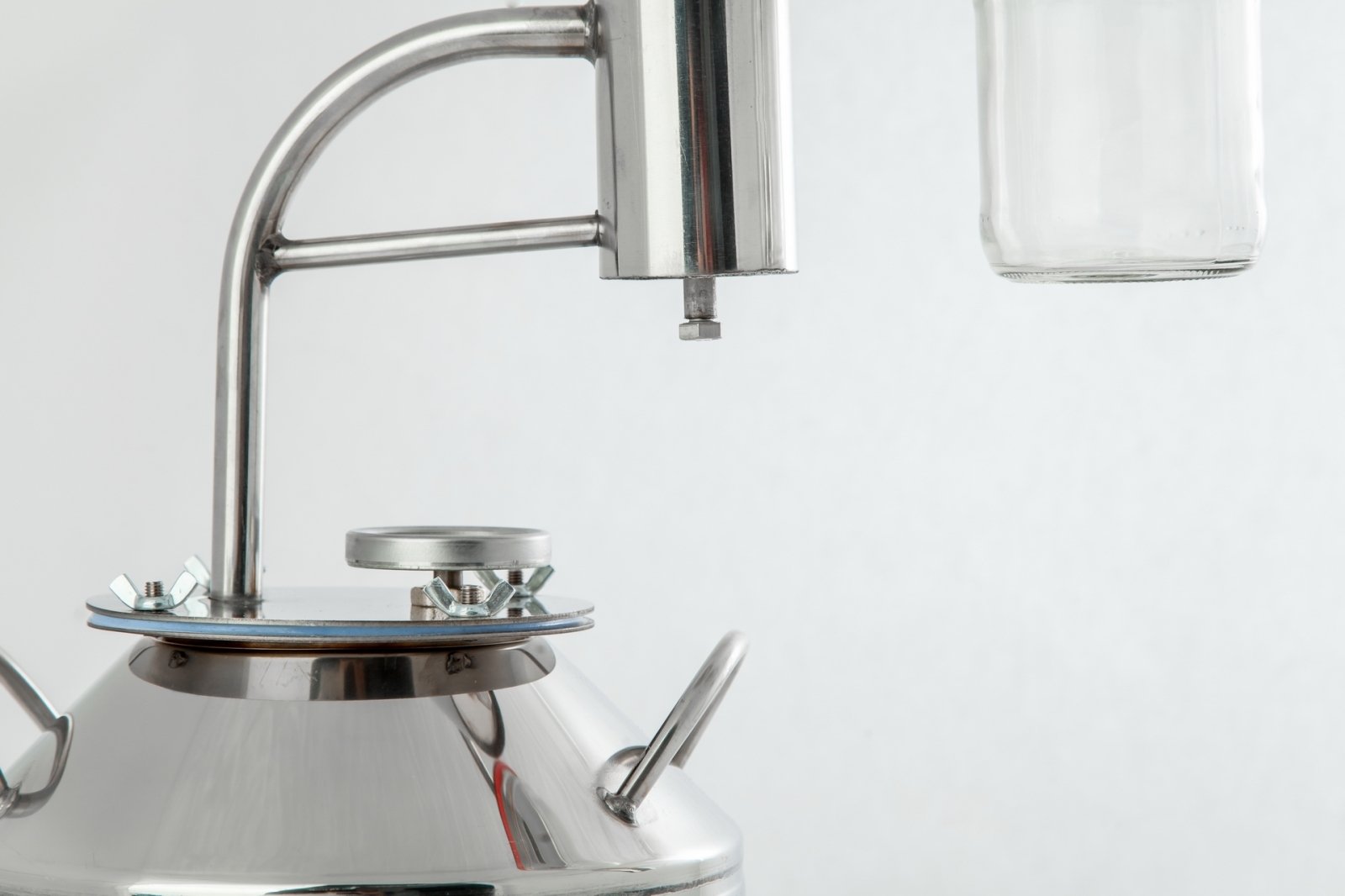 Комплектация: перегонная емкость (кастрюля для браги), с широкой заливной горловиной; вертикальный змеевик, для охлаждения спиртосодержащего пара; классический сухопарник со сливным отверстием для слива сивушных масел и очищения продукта от вредных примесей с укрепляющим эффектом; разборный сухопарник - под стеклянную банку, в такой сухопарник можно заложить ароматические ингредиенты (апельсиновые корки, травы) таким образом можно придать напитку эксклюзивный и элитный аромат и вкус; термометр; прокладка, для герметизации аппарата в соединении: крышка - куб.